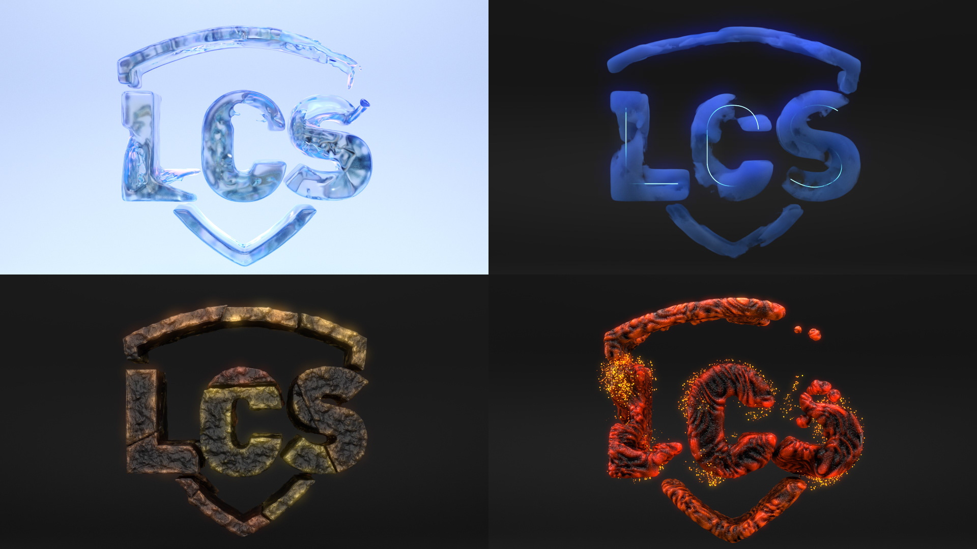 LCS League of Legends Championship Series E-sports logo development 2020 in collaboration with BigStudios. The strategy was to embrace the elements and the change they create. The elements are Ocean, Cloud, Inferno and Mountain. Creative direction was to be not too realistic and to retain some gaming world magic. My approach was to create the logo out of the the individual elements such as water, rock, cloud and fire/magma keeping a playful feel. Many visual and animation directions were explored and simulations were used in each elemental logo. The final result was a single camera move with edits cutting between the seperate elemental logos.