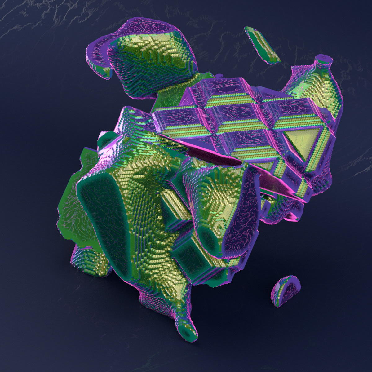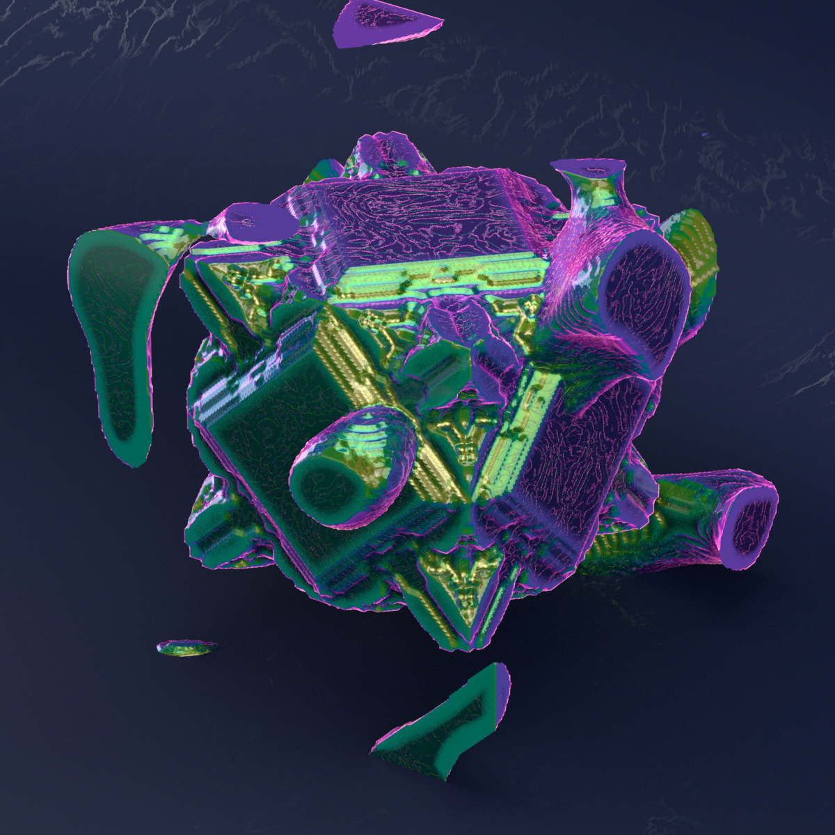 A study in complex procedural geometry using particle simulations and volume modeling. Also a study of procedural texturing in Arnold.